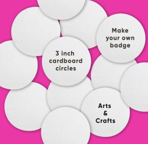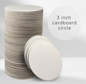 Heavy duty white 3″ cardboard circle shapes ready to decorate. 100 pieces.