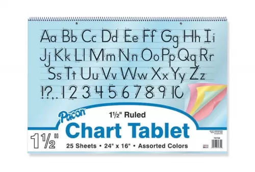 Traditional chart tablets made with pastel colored bond paper. Colors includes: Yellow, Pink, Salmon, Blue and Green. Sheets 1-1/2″ ruled the long way, spiral bound and 2-hole punched. Recycled and Recyclable