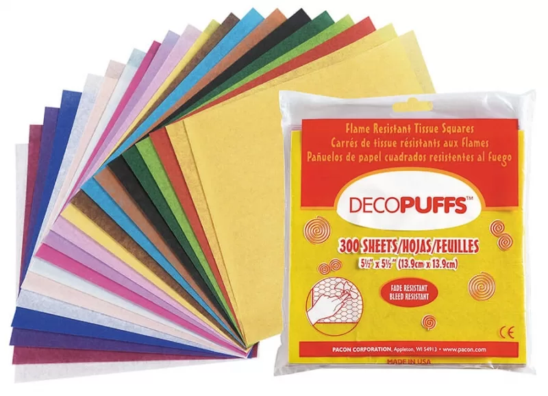 Brightly colored, flame-retardant, pre-cut tissue squares are a time-saver. Excellent for flower making or craft projects. Just the right size for early childhood cutting and pasting. There are 300 squares per package, and 20 assorted colors.
