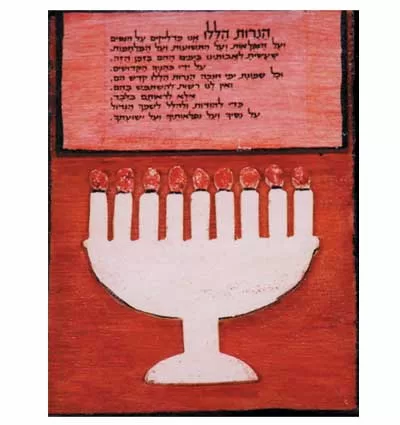Complete with menora and HaneirosHallalu. Measures 5”X7”.Kit includes: Wood parts, stain, shellac,glitter, glue, picture frame hanger,Haneiros Hallalu stickers, instructions.Age 5+